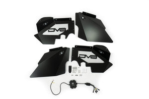 DV8 Off Road Aluminum inner fenders are designed to reseal your engine compartment when using aftermarket fenders, clean up your inner fender, and provide better air flow where it counts. Our inner fenders also allow easy access to the shocks and do not require for the fender and inner fender to be removed like our competitors! DV8 Inner fenders are available in raw aluminum or powder coated black. Optional Bluetooth powered rock lights are also available. Patent Number US D785,522 S. Catalog Installation Instructions