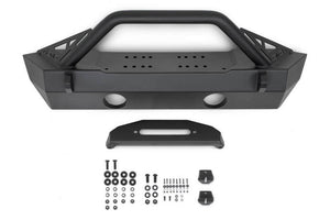 We took our iconic FS-15 Front Bumper and introduced several improvements. We reduced its weight while maintaining the same standards in strength and protection. The overall fit and finish was improved, and JL/JT models no longer require a bumper adapter. The FS-15 was designed for performance and protection while on the trail. Its high clearance design is well suited for OHV trails. The winch mount can fit multiple winch sizes, including most 12,000lb winches. Additional recovery options include dual 1-inch thick D-ring mounts for ?-inch shackles. The heavy duty bull bar protects both the winch and grille from light debris such as brush or small branches. This bumper features mounting points for factory 4-bolt style 4-inch fog lights. The bull bar is capable of mounting either dual light pods or our 13-inch Elite Series Light Bar. Installation on JL/JT models is a strictly bolt-on process, but please note that JK models require trimming or removal of the plastic trim cover.