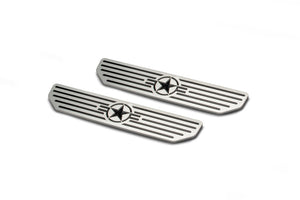 Made from extruded aluminum, they are black anodized and come with raised brushed accent bars to ensure a grippy mount into (or dismount from) your Jeep. Features: Sill Plates 2 Door or 4 Door, Material: Extruded Aluminum, Finish: Anodized, Color: Black, Location: Front, Fits: 2018-2020 Jeep JL, Sold As: Set.