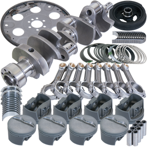 BALANCED 3.750" Cast Crank,5.700" I-BEAM Rods,3/8" ARP 8740 BOLTS,Forged 4032 MAHLE -5CC FLAT TOP 4.040" PISTONS,PLASMA-MOLY FILE-FIT RINGS,KING SI Rod/MAIN BEARINGS, DAMPER, AND 153 TOOTH FLEXPLATE.