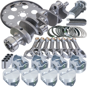 BALANCED 3.750" Cast Crank,5.700" I-BEAM Rods,3/8" ARP 8740 BOLTS,HYPEREUTECTIC KB CLAIMER -5CC FLAT TOP 4.060" PISTONS,PLASMA-MOLY STANDARD GAP RINGS,KING SI Rod/MAIN BEARINGS, DAMPER, AND 168 TOOTH FLEXPLATE.
