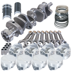 4.000" Cast Crank, 6.135" I-BEAM Rods,7/16" ARP 8740 BOLTS, Forged 2618 ICON 18CC CLOSED CHAMBER DOME 4.280" PISTONS, PLASMA-MOLY FILE-FIT RINGS,KING SI Rod/MAIN BEARINGS.