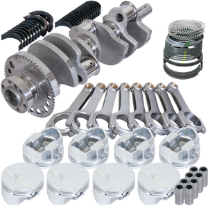 4.000" Forged 4340 Steel Crank, 58 TOOTH RELUCTOR, 6.125" H-BEAM Rods,7/16" ARP 8740 BOLTS,Forged 4032 DSS -5CC FLAT TOP 3.900" PISTONS,PLASMA-MOLY FILE-FIT RINGS,KING XP Rod/MAIN BEARINGS.