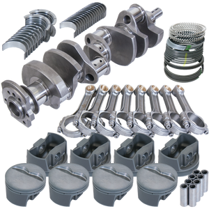 3.750" Cast Crank, 5.700" 5140 I-BEAM Rods,3/8" ARP 8740 BOLTS,Forged 4032 MAHLE -5CC FLAT TOP 4.040" PISTONS,PLASMA-MOLY FILE-FIT RINGS,KING SI Rod/MAIN BEARINGS.