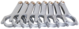 Forged 4340 steel H-Beam connecting rods are forged from a two-piece forging and feature a fully machined and shot-peened surface. Sizing is held to exact tolerances. Sold as a weight-matched set. Recommended for competition use.