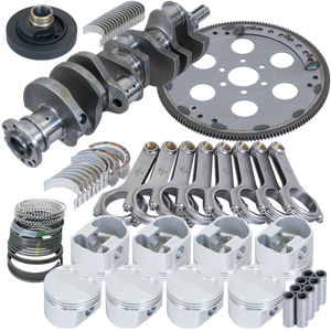 BALANCED 4.250" Cast Crank, 6.735" H-BEAM Rods,7/16" ARP 8740 BOLTS,Forged 4032 SRP -5CC FLAT TOP 4.185" PISTONS,PLASMA-MOLY FILE FIT RINGS,KING SI Rod/MAIN BEARINGS.