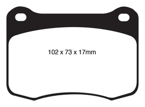 EBC Yellowstuff is an aramid fibre based brake compound with high brake effect form cold and is possibly one of the first ever compounds that can be used for STREET AND TRACK DRIVING. These pads do not require warm up but do get even stronger under the heat of hard driving. These are not a low dust pad and if your desire is for a low dust premium street use pad, you should consider EBC Redstuff.When considering full race use, Yellowstuff has been a strong favourite, having been used for two years in the Swedish Camaro Cup and at numerous other race events where a stock caliper system is fitted.It is also the choice of 90-percent of the Mazda MX5 Miata competitors in the UK race series and has an unblemished record as rotor friendly track pad for vehicles up to 2000 lbs weight or 200 BHP.In the USA the SCCA and NASA drivershave been testing Yellowstuff with feedback and good reports POURING in from a 543 test driver major market proving event with these groups. Read that figure again 543 test drivers.There is no guesswork here.