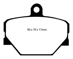 Designed for premium street driving offering better brake effect up to 600-degrees C (1100-degrees F). EBC Greenstuff has a high initial brake effect and gives drivers confidence from first application of the brake pedal. There is no such thing as a NO DUST pad. The very nature of how a brake works requires that some dust be generated to avoid rotor vibration (shimmying). The EBC pad creates less dust and dust is more easily washed off than most. All pads create more dust as they are bedding in especially if rotors are worn. Nominal friction coefficient 0.55. For heavier faster cars and vehicles above 200bhp we strongly recommend Redstuff which DOES offer much less dust.
