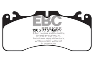 There are TWO reasons our customers love Redstuff, First because they are the lowest dust pad we have encountered by reducing dust by 60-90-percent. Plus the minimal dust you see is very easily removed with a simple sponge wash as it contains no steel fibre particles as in ALL OTHER pads. Second they brake like an alligator right from cold (as good as Original pads or better) and just get better as they heat up.This material is a Synthetic Fiber based brake compound enhanced with ceramic particles. If you have previously tried EBC redstuff (pre-ceramic compound) this material is light years ahead. It lasts longer; it brakes better and is quieter. Being a hard wearing pad, bed-in times can be as long as 1000 miles and drivers must be patient until the pad takes up the shape of their disc (brake rotor). This is a truly impressive fast road pad for repeated heavy braking.It emits far less dust than semi-metallic pads and has been proven to stop a passenger car/sedan/sport compact/hot hatch 13 metres quicker than OEM pads from 100mph/160kph. Features EBC Brake-In surface coating which conditions rotor surface and accelerates pad bed-in. Nominal friction coefficient 0.5 with approx. 50-percent dust reduction.Most EBC Red Ceramic pads are approved to ECE R90 brake safety regulation. Installation Instructions Installation Instructions Warranty