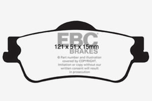 EBC Yellowstuff is an aramid fibre based brake compound with high brake effect form cold and is possibly one of the first ever compounds that can be used for STREET AND TRACK DRIVING. These pads do not require warm up but do get even stronger under the heat of hard driving. These are not a low dust pad and if your desire is for a low dust premium street use pad, you should consider EBC Redstuff.When considering full race use, Yellowstuff has been a strong favourite, having been used for two years in the Swedish Camaro Cup and at numerous other race events where a stock caliper system is fitted.It is also the choice of 90-percent of the Mazda MX5 Miata competitors in the UK race series and has an unblemished record as rotor friendly track pad for vehicles up to 2000 lbs weight or 200 BHP.In the USA the SCCA and NASA drivershave been testing Yellowstuff with feedback and good reports POURING in from a 543 test driver major market proving event with these groups. Read that figure again 543 test drivers.There is no guesswork here.