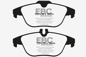 There are TWO reasons our customers love Redstuff, First because they are the lowest dust pad we have encountered by reducing dust by 60-90-percent. Plus the minimal dust you see is very easily removed with a simple sponge wash as it contains no steel fibre particles as in ALL OTHER pads. Second they brake like an alligator right from cold (as good as Original pads or better) and just get better as they heat up.This material is a Synthetic Fiber based brake compound enhanced with ceramic particles. If you have previously tried EBC redstuff (pre-ceramic compound) this material is light years ahead. It lasts longer; it brakes better and is quieter. Being a hard wearing pad, bed-in times can be as long as 1000 miles and drivers must be patient until the pad takes up the shape of their disc (brake rotor). This is a truly impressive fast road pad for repeated heavy braking.It emits far less dust than semi-metallic pads and has been proven to stop a passenger car/sedan/sport compact/hot hatch 13 metres quicker than OEM pads from 100mph/160kph. Features EBC Brake-In surface coating which conditions rotor surface and accelerates pad bed-in. Nominal friction coefficient 0.5 with approx. 50-percent dust reduction.Most EBC Red Ceramic pads are approved to ECE R90 brake safety regulation.