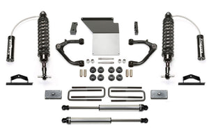 As an upgrade to our popular 4'' Budget System we offer the system with our Uniball Upper Control Arms. The Uniball Upper Control Arms feature .120'' wall 4130 Chromoly tubing with a 1.50'' OD and 1'' FK Stainless PTFE Uniballs for unsurpassed strength. The system also includes front differential drop brackets, a 1/4'' thick steel skid diff plate along with 1 1/2'' rear lift block and u-bolts. The 4'' System is available with our high end Dirt Logic 2.5 Coilovers for 10'' of front wheel travel and Dirt Logic 2.25 rear shocks for aggressive offroad driving. Uniball Upper Control Arms are available separately as an upgrade to stock, previously installed Fabtech'suspensions or other aftermarket suspension systems.