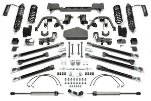 This heavy duty Crawler Coilover system replaces all eight link arms with extended length units for aggressive offroad use while providing superior on road driving characteristics. The links are mounted up high on the frame for maximum ground clearance. The large link arms pivot on Fabtech 5 Ton Joints for reliability and a quiet ride with a lifetime warranty. System includes 1/4'' thick steel Track Bar brackets that weld on. It?s the strongest way to relocate the Track Bars for proper roll center front and rear that will not fail and leave you stranded. The bolt on front Dirt Logic 2.5 Coilover conversion provides outstanding high speed damping with the ability to crawl at low speed with maximum articulation for big rocks. Coilover is mounted on top of the centerline of the axle to prevent premature Link Arm bushing wear leading to poor handling. Dual rate coil springs provide factory load carrying capacity with a smooth ride. The flexible coil design offers an extended travel range for aggressive rock crawling with great highway manners. Includes 8 Long Arm Links & Mounts, Coilover Hoop Kit Front, Long Travel Rear Coil Springs, Track Bar Brackets Front & Rear, Sway Bar Links Front & Rear, Pitman Arm, Brake Lines Front & Rear, E Brake Bracket, Rear Bump Stop Brackets, Front Dirt Logic 2.5 Coilovers w/ Reservoirs and Rear Dirt Logic 2.25 Shocks.