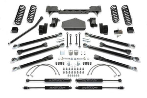 Fabtech's Crawler long arm coil systems replace all eight of the link arms with extended length units to allow for smooth operation at extreme angles. The link arms are mounted up high on the frame to increase ground clearance without the need to bend the Links as with other long arm systems on the market. Construction of the link arms is nothing short of the best heavy duty units you can buy. Each lower link is built from 2'' OD .313 thick wall DOM that is so strong Fabtech provides a warranty against bending. Link arms are internally threaded to accept the ground breaking Fabtech 5 Ton Joint that is guaranteed never to wear out. Weld on 1/4'' thick steel Track Bar brackets provide the proper roll center front and rear and will not fail leaving you stranded. This system utilizes Fabtech's Standard coil springs that are a single rate design and provide great all around suspension performance. Factory load carrying capacities are retained in these quality springs. Includes 8 Long Arm Links & Mounts, Standard Travel Coil Springs Front & Rear, Sway Bar Links Front & Rear, Adjustable Track Bar Front, Track Bar Bracket Rear, Brake Lines Front & Rear, E Brake Bracket, Front Bump Stop Extensions, Rear Bump Stop Brackets and Stealth shocks.