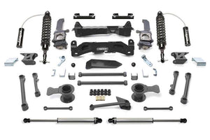 Fabtech's FJ system features extended length steering knuckles attaching to one piece lower control arm crossmembers for a full 6 inches of lift to clear 35'' tires. Front lower crossmembers feature adjustable alignment cams along with an integrated 1/4'' thick steel differential skid plate. The Performance system includes Fabtech's Dirt Logic 2.5 Coilover shocks, replacing the stock front strut assemblies. The Performance rear suspension systems include tubular upper and lower link arms, utilizing the stock rear coil springs for a supple highway ride with excellent offroad articulation. Installation does not require relocation of the Rack and Pinion or disassembly of the front strut assemblies. The stock front and rear driveshafts are retained due to Fabtech's precise suspension geometry.