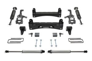 This system feature Fabtech?s proven IFS technology with extended length ductile iron steering knuckles for proper Ford electronic stability control functionality. Heavy duty 1/4? thick steel lower control arm crossmembers provide superior ground clearance for adventurous offroad trails. Rear lift is accomplished with a 2.25? lift block and extended length u bolts. The Performance system includes Fabtech?s legendary stainless steel Dirt Logic 2.5 Coilover shocks for outstanding damping capacity with a great highway ride. Rear shocks include the Dirt Logic 2.25. This high quality system does not require drilling or cutting for installation and comes Fabtech?s 5/60 Powertrain warranty. 1/4? thick steel lower control arm crossmembers are arched for maximum ground clearance. Four adjustable alignment cams provide a wide range of adjustment. The fully welded box design of these crossmembers provides additional strength to the front suspension. Extended length ductile iron steering knuckles retain near stock track width keeping the tires under the fenders. These steering knuckles are designed to work in conjunction with the Ford ESC for proper functionality at all speeds. The Brake Line Brackets reposition the factory Ford brake lines down on the frame for the new travel range without having to open the brake system. Keeps factory fluid system intact. 1/4" thick steel drop brackets reposition the front sway bar for the increased ride height. This allows the sway bar link ends to fully cycle without binding throughout the extended travel range. 5" Tall rear lift blocks replace the factory blocks without changing the ride quality or load carrying capacity. American made U Bolts that retain the entire rear differential to the vehicle. A critical part that demands the best quality for your vehicle.