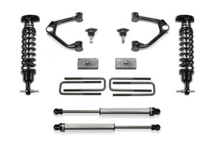 This quality Upper Control Arm system for the 2019 Chevy Silverado 1500 & GMC Sierra 1500 4WD provides a 3.5" increased ride height over stock without creating suspension bind at full droop. Lift is accomplished with spacers that utilizes the factory coilover shocks for a stock ride. The Fabtech Upper Control Arms address the geometry of the front suspension with the new ride height for proper align-ability. Heavy duty ball joints allow for extended travel to eliminate binding. Due to the GM suspension geometry there are no differential drop brackets required for the CV axles to operate properly. This 3.5? system features the legendary stainless steel Dirt Logic 2.5 Coilover shocks. These Coilovers are built of the highest quality materials and will surpass all shocks in corrosion resistance due to the stainless steel body and NitroSteel piston rod. They will provide an outstanding ride quality both on and offroad. Rear lift comes from 1.5? blocks and u-bolts with Dirt Logic 2.25 shocks for a balanced ride. Dirt Logic shocks are the only stainless steel body shock on the market that provide maximum corrosion resistance in harshest conditions. Features increased ground clearance, extended range upper ball joints provide a smooth quiet ride, increased fender clearance compared to a Leveling Kit for 33? tall tires, suspension can be restored to stock, easy installation.