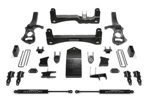 Fabtech?s world renowned IFS suspension design for the GM 1500 provides excellent drive ability both on and offroad. There is zero bump steer throughout the suspension cycle that helps reduce drive fatigue while improving the overall drive ability of the vehicle. The near stock track width keeps the tires under the fenders for a clean appearance. Fabtech ?s proprietary steering knuckle geometry provides excellent lock to lock turning radius to maneuver in tight spots. Heavy duty 1/4" thick steel crossmembers feature OE style alignment cam pins that utilize the factory cams for easy adjustment. Triple front diff mounts reposition the differential for vibration free operation at high speed. The factory coilover shocks are relocated from the bottom to allow for full steer while achieving 6? of lift. Rear lift is accomplished with a 5" Block and u-bolt system. Includes rear Stealth Shocks. Fabtech has addressed all aspects of the suspension for proper wheel travel and lock to lock steering without over cycling. Comes with a free 5 year 60,000 mile Powertrain Warranty.