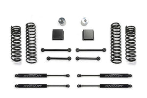 This Sport II lift kit is Fabtech?s most popular Gladiator system providing increased ride height and suspension performance at a great price. Installation is easy and can be installed in a couple hours. The Sport II features American made front and rear coil springs that are a dual rate design allowing extended suspension travel for offroad use while providing a smooth highway ride. The first stage of the spring provides a soft ride with the ability to extend for additional travel. The second stage is designed to handle the payload of the Gladiator and address large impact absorption at higher speeds. Four bump stops extensions utilize the factory bump stops for compliant cushioning at full compression. The extensions retain the stock down travel to eliminate over cycling of the suspension and driveline. The extended length front and rear sway bar links with urethane bushings reposition the bars to work within the factory operating planes. By extending the length of the links, it prevents the sway bar from going over center and creating bind at full extension travel. Stealth monotube shocks are included in the popular Gladiator lift kit to provide enhanced on and offroad damping. This Gladiator lift kit is an excellent choice for the Jeep enthusiast that wants to run larger tires with enhanced offroad capability and a good highway ride. WHAT?S IN THE SYSTEM: Front & Rear Dual Rate Coil Springs. Front & Rear Sway Bar Links. Front & Rear Bump Stop Brackets. Free 5 Year 60,000 Mile Powertrain Warranty.