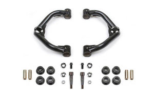 2020 Chevy Silverado 2500HD/3500HD, GMC Sierra 2500HD/3500HD 4WD - Fits 3.5in Lifts Only. Fabtech's Uniball Upper Control Arms provide increased strength to the front suspension by replacing the stock ball joint upper arms that can become worn and eventually fail under aggressive offroad use. These heavy duty upper arms are designed for longevity in rugged offroad conditions. They also feature additional caster compared to stock upper arms for superior on road use with oversized tires. The top quality construction of these arms include .120in wall 1.50in OD 4130 Chromoly tubing and American made 1in FK Stainless PTFE lined Uniballs. The 17-4 Stainless Steel heat treated Uniball pins fit into the factory ball joint tapers without modification to the spindle for easy return to stock feature. Fabtech uses 17-4 Stainless steel for the misalignments that provide proper clearance of the 1in Uniballs throughout the travel range. On the frame side of the upper arms, there are quality urethane bushings that help reduce road noise while providing longevity. Fabtech's Uniball Upper Control Arms are an excellent upgrade to stock or lifted suspension systems for drivers that demand the best for their vehicle. Features: Arms eliminate factory upper ball joint w/ super strong 1in ID Stainless Steel American Uniball for increased suspension strength. Additional caster is built into Arms for enhanced align ability with oversized tires. 1.50in OD .120in wall 4130 Chromoly tubing reduces flex found in stock arms for more positive road feel. 17-4 Heat treated Uniball pin fits into factory ball joint taper without modification to the spindle for easy return to stock feature. 17-4 Stainless steel misalignments for proper clearance of large Uniballs throughout the travel range. 250 wall DOM bushing barrels with welded gussets for strength.