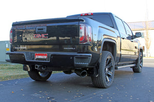 The new Flowmaster® Flow FX® cat-back exhaust system for the 2011-2018 GM Silverado/Sierra 1500 trucks with the 6.2-Liter engine is manufactured using durable 409 stainless steel throughout and features 3.5-inch mandrel bent pipes for better exhaust gas flow, and a Flow FX "straight-through" muffler is used for a moderate sound level and maximum performance. Maximum increases on the dyno revealed +16 hp and +16 lb-ft at the rear wheels. This system exits out the side, behind the rear wheel with a 5.00-inch black ceramic tip for added style and a custom look. The system uses all the existing factory hanger locations and includes installation instructions and all necessary hardware for an easy installation that you can do at home. Backed by Flowmaster's Lifetime Limited Warranty.