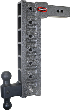 GEN-Y's Mega-Duty Adjustable Drop Hitches start at 10,000 LB towing capacity and go up to 32,000 LB towing capacity. There are multiple drop options as well depending on your trailer towing needs. Catalog Datasheet
