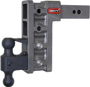 GEN-Y's Mega-Duty Adjustable Drop Hitches start at 10,000 LB towing capacity and go up to 32,000 LB towing capacity. There are multiple drop options as well depending on your trailer towing needs.