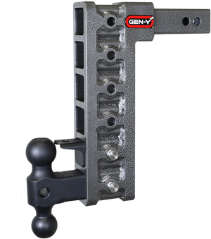 GEN-Y's Mega-Duty Adjustable Drop Hitches start at 10,000 LB towing capacity and go up to 32,000 LB towing capacity. There are multiple drop options as well depending on your trailer towing needs. Catalog Datasheet