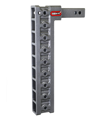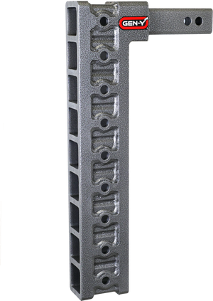 GEN-Y's Mega-Duty Adjustable Drop Hitches start at 10,000 LB towing capacity and go up to 32,000 LB towing capacity. There are multiple drop options as well depending on your trailer towing needs. Catalog Datasheet