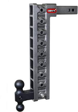 GEN-Y's Mega-Duty Adjustable Drop Hitches start at 10,000 LB towing capacity and go up to 32,000 LB towing capacity. There are multiple drop options as well depending on your trailer towing needs. Catalog Datasheet