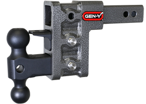 GEN-Y's Mega-Duty Adjustable Drop Hitches start at 10,000 LB towing capacity and go up to 32,000 LB towing capacity. There are multiple drop options as well depending on your trailer towing needs. Catalog Datasheet