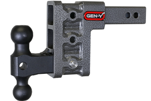 GEN-Y's Mega-Duty Adjustable Drop Hitches start at 10,000 LB towing capacity and go up to 32,000 LB towing capacity. There are multiple drop options as well depending on your trailer towing needs. Catalog Datasheet