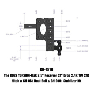 Gen-Y The Boss Torsion-Flex 2.5in Receiver 21in Drop Hitch w/GH-061 Dual-Ball/Stabilizer Kit - GH-1516