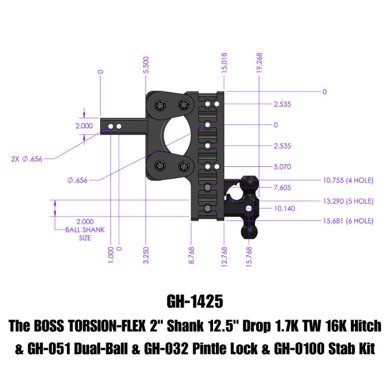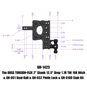 Gen-Y The Boss Torsion-Flex 2in Shank 15in Drop 16K Hitch w/GH-051 Dual-Ball/Pintle Lock/Stab Kit - GH-1425