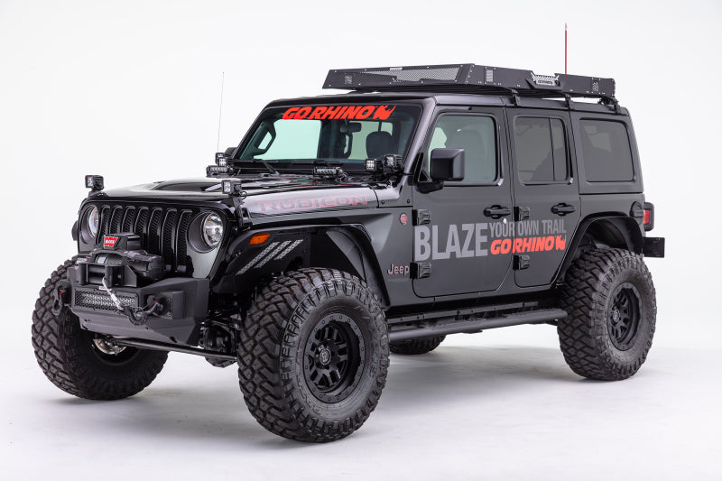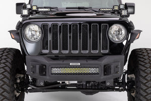 Part of Go Rhino's famous Jeep Bumper family of products. Rockline Winch Ready Front Stubby Bumper for Jeep JK, JL and JT Wrangler with signature hex mesh LED protective cover for use with either an industry standard 20" double row LED bar or up to 4 standard 3" cube lights. Rockline Bumpers come with a Limited Lifetime warranty on materials and construction and a 5 year warranty on the Textured Black finish. Installation Instructions