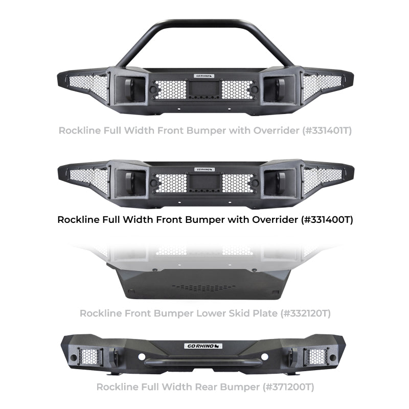 Part of Go Rhino's famous Bumper family of products. Rockline Winch Ready Front Full Width Bumper for Bronco with signature hex mesh LED protective cover for use with either an industry standard 20" double row LED bar or up to 4 standard 3" cube lights. Rockline Bumpers come with a Limited Lifetime warranty on materials and construction and a 5 year warranty on the Textured Black finish. Installation Instructions