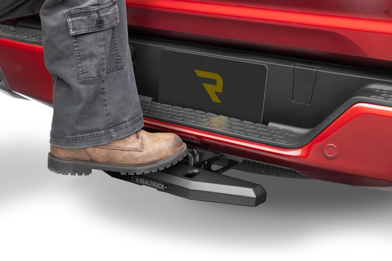 Go Rhino's Raptor-inspired RB30 Slim Hitch Step completes your vehicle's stylish upgrade while offering both convenience and safety features. The modern bullet-stamped design matches the popular RB30 and RB30 Slim Line running boards while providing easy access to your truck bed or roof rack. The heavy-duty, 16-gauge zinc-coated galvanized steel construction protects your vehicle from rear-end collisions and works with 2" hitches and standard hitch pins. The RB30 Hitch Step is available with a protective bedliner coating or textured black powder coat finish, both which carry a 5-year limited warranty. Installation Instructions Installation Instructions