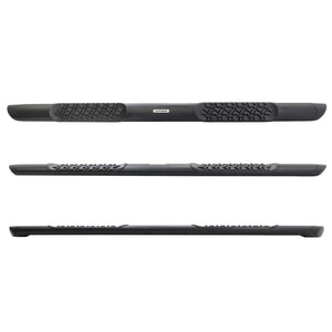 Go Rhino's V3 side steps bring on a sleek, aerodynamic look, the convenience of corrosion-resistant aluminum and strength based on quality engineering and design. Finished with a textured black powder coating, the 5” wide ellipse-shaped boards feature anti-slip polymer step pads with a multi-dimensional tire tread pattern so rain, snow and slush easily drain off and reduce the risk of slipping while stepping up into your vehicle. Each V3 board is fortified with a dual core full length extrusion allowing the board to support up to 300 lbs per step pad (600 lbs per side for 4-door vehicles). V3 Side The V3 Side Steps come with a Limited Lifetime warranty on materials and construction and a 5 year warranty on the Textured Black Finish.
