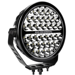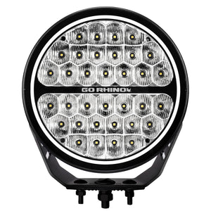 Go Rhino Xplor Blackout Series Round LED Sgl Driving Kit w/DRL (Surface/Thread Stud Mnt) 9in. - Blk - 751700911DRS