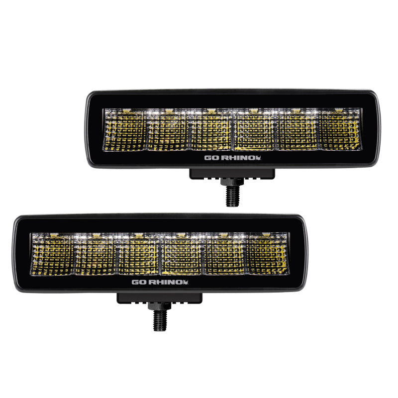 Go Rhino Xplor Blackout Series Sixline LED Flood Light Kit (Surface/Threaded Stud Mnt) - Blk (Pair) - 750300621FBS