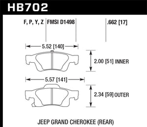 Hawk 11-12 Dodge Durango / 11-12 Jeep Grand Cherokee HPS Rear Street Brake Pads - HB702F.662