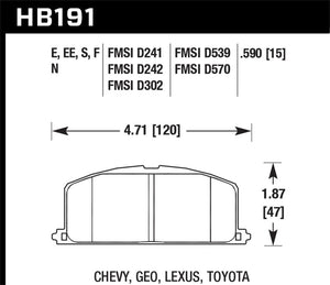 Hawk 86-88 Chevy Nova / 90-92 Geo Prizm GSI / 90-92 Prizm LSI / Toyota (Various) Race Front Brake Pa - HB191E.590