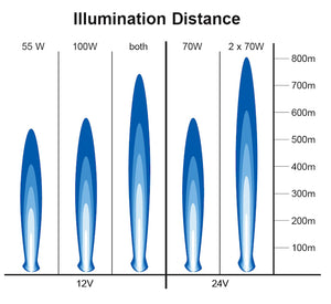Two halogen lamps with FF reflectors with separate switches, push-button switch in handle enables Morse function
