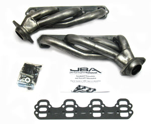 JBA shorty headers are one of the foremost performance upgrades you can bestow upon your beloved car, truck, or SUV. JBA Headers are significantly less restrictive than stock manifolds and dramatically increase the power and efficiency of your engine. Each header is constructed from durable stainless steel to endure the abuse of racing, towing, and daily driving – built to withstand it all. JBA’s proprietary Firecone collector design uses race proven technology for producing maximum power and torque gains where you drive most. Each system includes factory style emission connections and high-quality hardware for a professional no-leak installation. Catalog Installation Instructions Installation Instructions