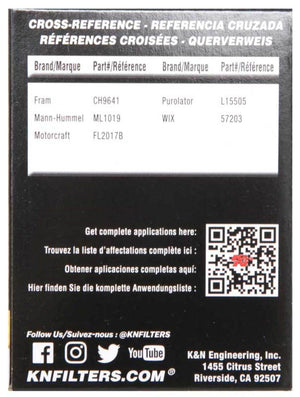 K&N Cartridge Oil Filters are designed to satisfy the needs of racers and engine builders as well as the average vehicle owner who wants the best oil filter available. K&N cartridge oil filters trap harmful contaminants while the filter's construction allows for high oil flow rates. All K&N oil filters are manufactured to meet stringent engineering standards. They are covered by a limited warranty to be free from defects in materials and workmanship when installed and replaced using engine and equipment manufacturer's recommended service intervals.