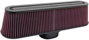 The RP-5135 Universal Air Filter is constructed from an oiled cotton filter media. It comes with a K&N embossed carbon fiber top and carbon fiber base for strength and durability. The carbon fiber element adds to the light-weight design and gives this filter a smooth glass like finish. The RP-5135 is a clamp-on filter that has an inside flange diameter of 3-5/16 inches and a flange length of 2 inches. The base is 18-3/4 inches by 5 inches and the filter height is 4-13/16 inches. The filter top has a threaded hole to accommodate a 6 millimeter bolt for easy mounting.