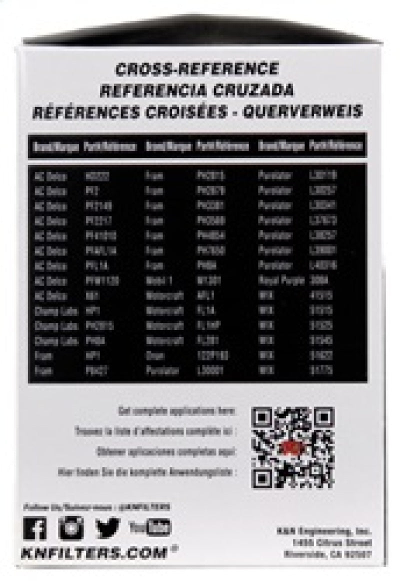 K&N Pro Series Oil Filters have been specially designed for professional installers and service providers. Their high flow design can help to improve engine performance by reducing oil filter restriction. Our Pro Series Oil Filters have a fluted canister shape so they can be removed with a traditional oil filter wrench commonly available to commercial installers. These Pro Series oil filters provide outstanding filtration and engine protection throughout their service life. They are engineered to handle all grades of synthetic, conventional and blended motor oils. The pleated media provides high capacity making them suitable for extended oil change intervals when used in accordance with the vehicle and motor oil manufacturers recommendation. K&N Pro Series Oil Filters are available for canister and cartridge type oil filter applications.