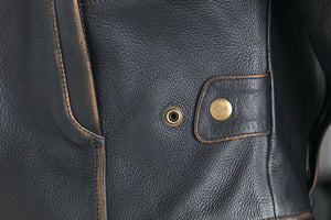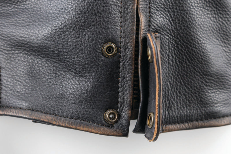Quality, medium-weight leather provides protection and comfort. The vintage finish gives this jacket that broken-in look and feel, like your favorite pair of jeans. A removable, insulated, fully-sleeved liner adds warmth in cooler temperatures. Two front chest intake vents and two vertical rear exhaust vents keep you cool in warmer weather. Zippered sleeve vents allow additional air flow, and action back gussets provide better mobility when in the riding position.
