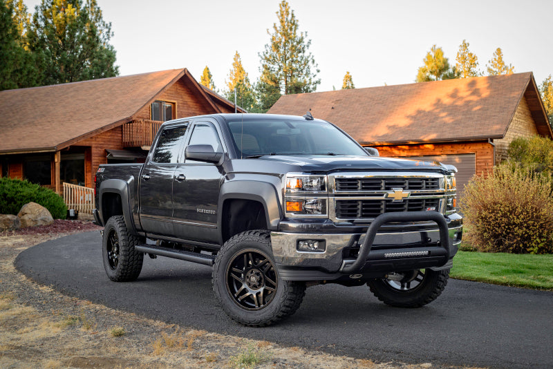 Protects your front end from flying debris with 3.5 inches of oval steel tubing. These bull bars also boost your visibility with an integrated 20 in. LED light bar. The included heavy duty light bar illuminates your night driving with a bright flood beam pattern and is easily wired into your factory light wiring, or a wiring harness can be purchased separately. Available in black textured powder coat or polished T304 stainless steel finish. Our popular LUND bull bars may now be ordered with a wire harness kit. The wire harness kit is also sold separately for lighting and accessories up to 30 Amps. LUND's bull bars with LED light bar and wiring kit is the total package to see and be seen, providing complete front end style, lighting and protection.