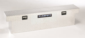 Standard Cross Bed Boxes designed to fit most full-size trucks, these boxes maximize interior storage space while providing access to additional storage underneath the box. Premium features include interior side pockets, a 4-section sliding tool tray and secure commercial grade locking latches. Available in brite aluminum or black powder coat finishes. Warranty